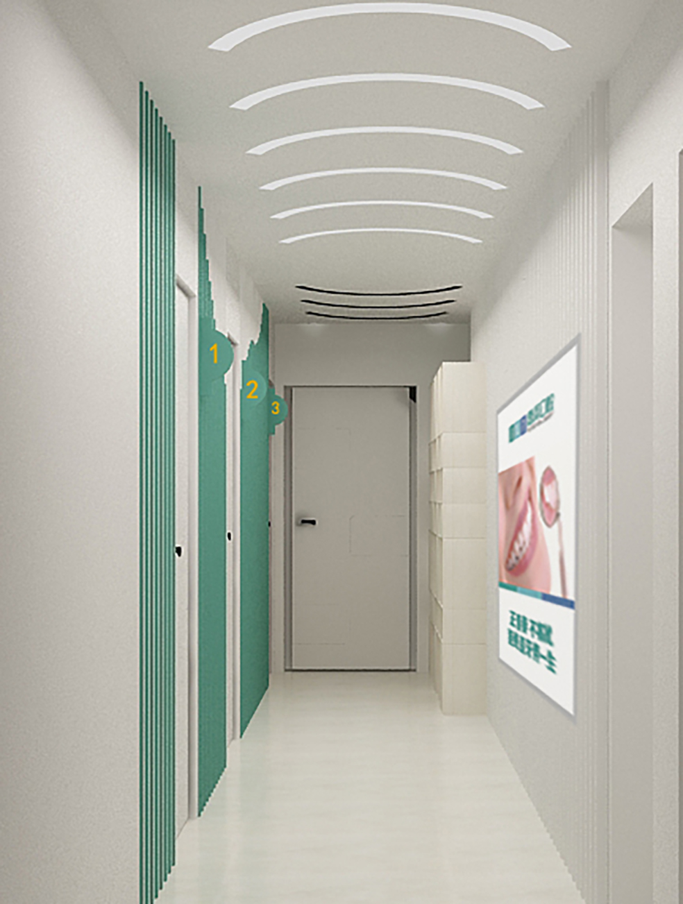 医疗空间形象升级:执行 “口腔诊所SI系统设计” ,对候诊区、诊疗区、儿童区等空间进行标准化改造。通过柔和的灯光、合理的动线、透明的诊室设计与温馨的儿童乐园,将“无痛、舒适、安心”的品牌承诺转化为可感知的空间体验。