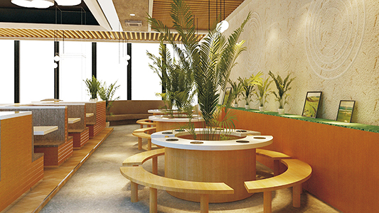 在 餐饮空间设计 部分,我们提前完成了从品牌氛围到运营动线的全面规划。设计方案前瞻性地平衡了快餐效率与场景体验,将品牌视觉元素转化为沉浸式的空间语言。这一部分工作,完整呈现了一个品牌从概念走向线下场域的 设计 闭环与专业性。