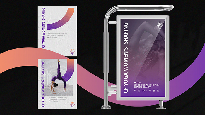 在瑜伽行业高度同质化的视觉竞争中,色彩策略成为品牌差异化的关键突破点。支点品牌设计为CF瑜伽打造的全案系统中,创新性地确立粉紫色为核心品牌色,将力量训练的专业感与女性瑜伽的柔美特质完美融合,构建出极具识别度的连锁品牌视觉体系。