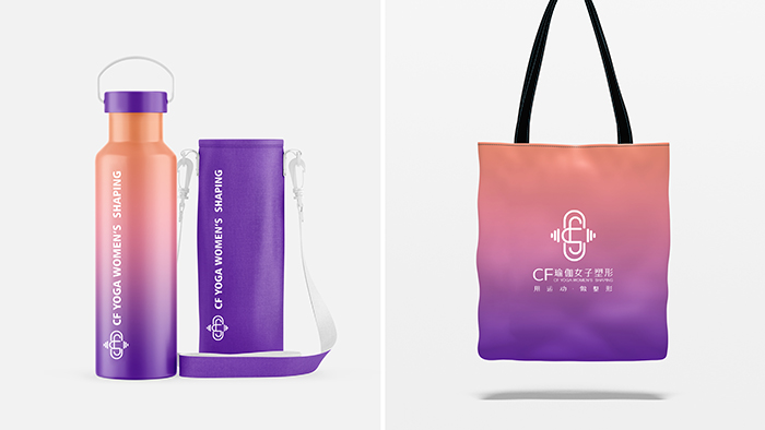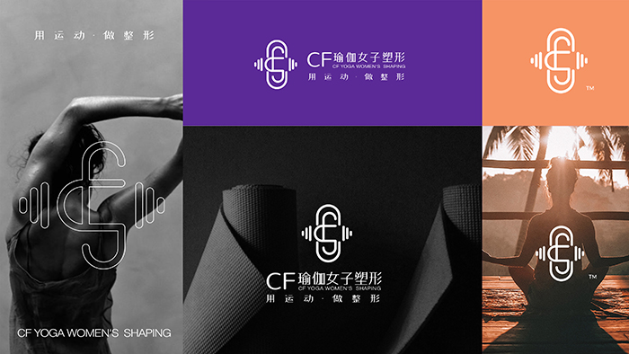 我们为CF瑜伽创作的标志,以字母“CF”与哑铃形态的巧妙结合为核心创意。在粉紫色调的演绎下,这一设计呈现出独特美学:哑铃象征的力量感被柔和的粉紫色调和,流畅的字母线条则保持了瑜伽的灵动特质。粉紫色在此不仅是色彩,更成为品牌“柔韧力量”理念的视觉载体,让品牌在众多瑜伽馆中建立鲜明的第一印象。